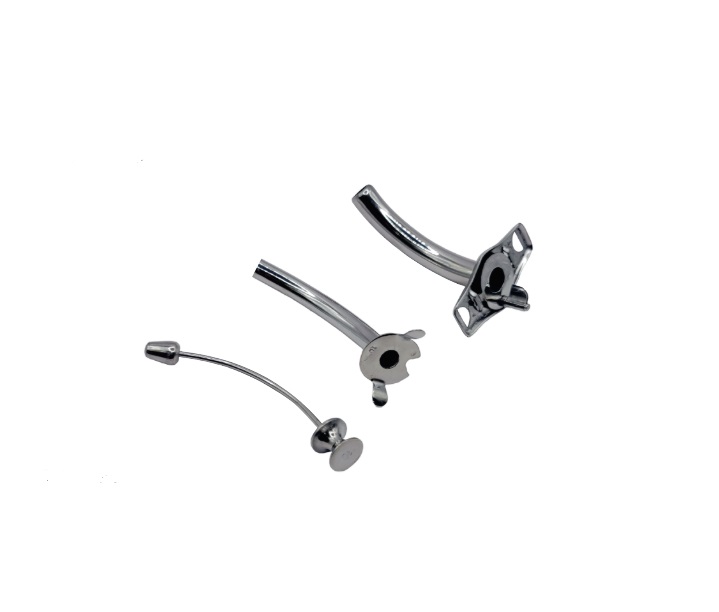 Cânula de Traqueostomia em Aço Inoxidável N.0 Curta com Endocânula e Guia da Vital, para procedimentos de traqueostomia em Adolescentes.